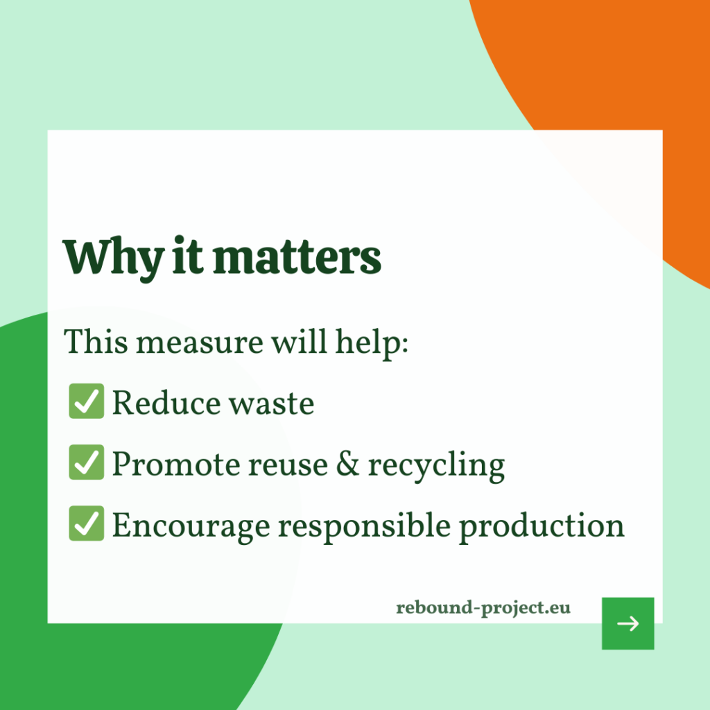 The measure aims to promote more sustainable product lifecycle management by encouraging businesses to reuse, recycle, donate, or reintroduce unsold products into the market. By shifting away from disposal-based practices, the policy supports responsible production models and reinforces Europe’s broader sustainability and circular economy objectives.